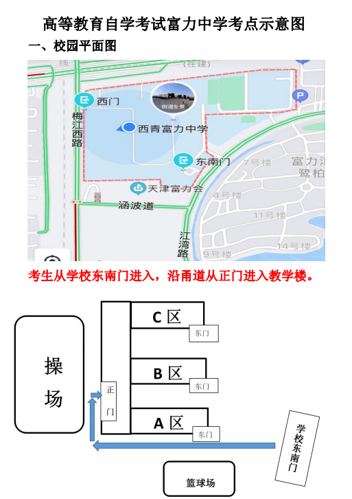 2020年天津市西青区自考考点示意图