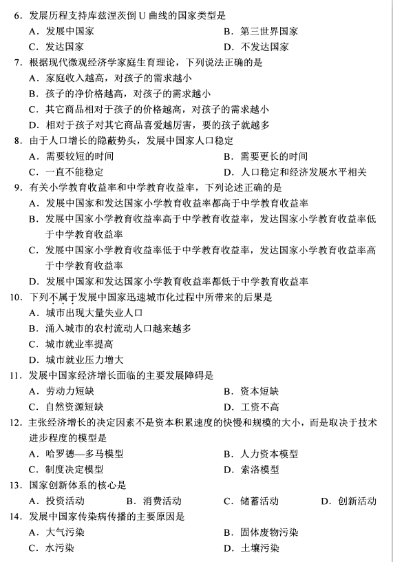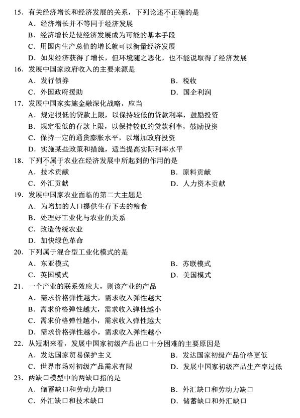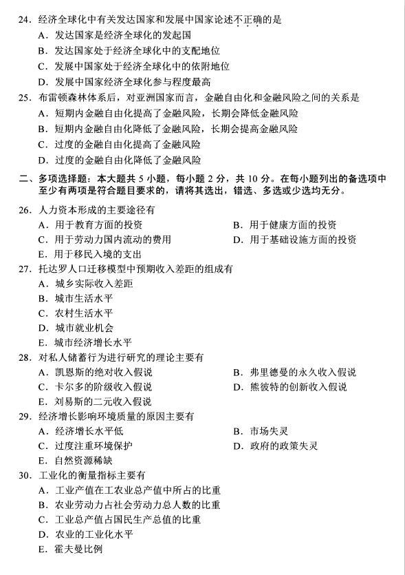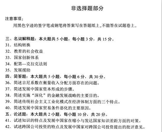 全国2020年8月自考发展经济学00141试题