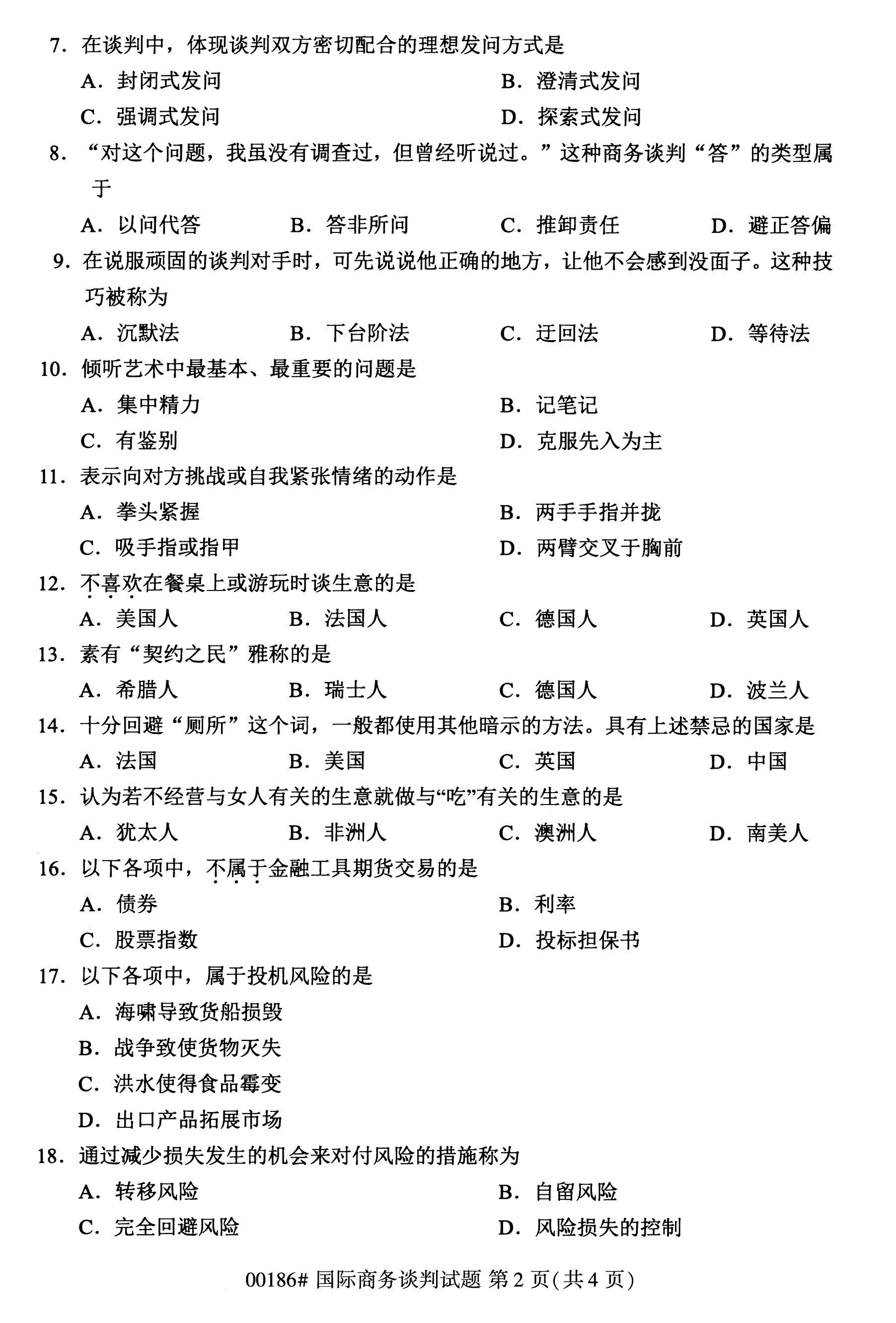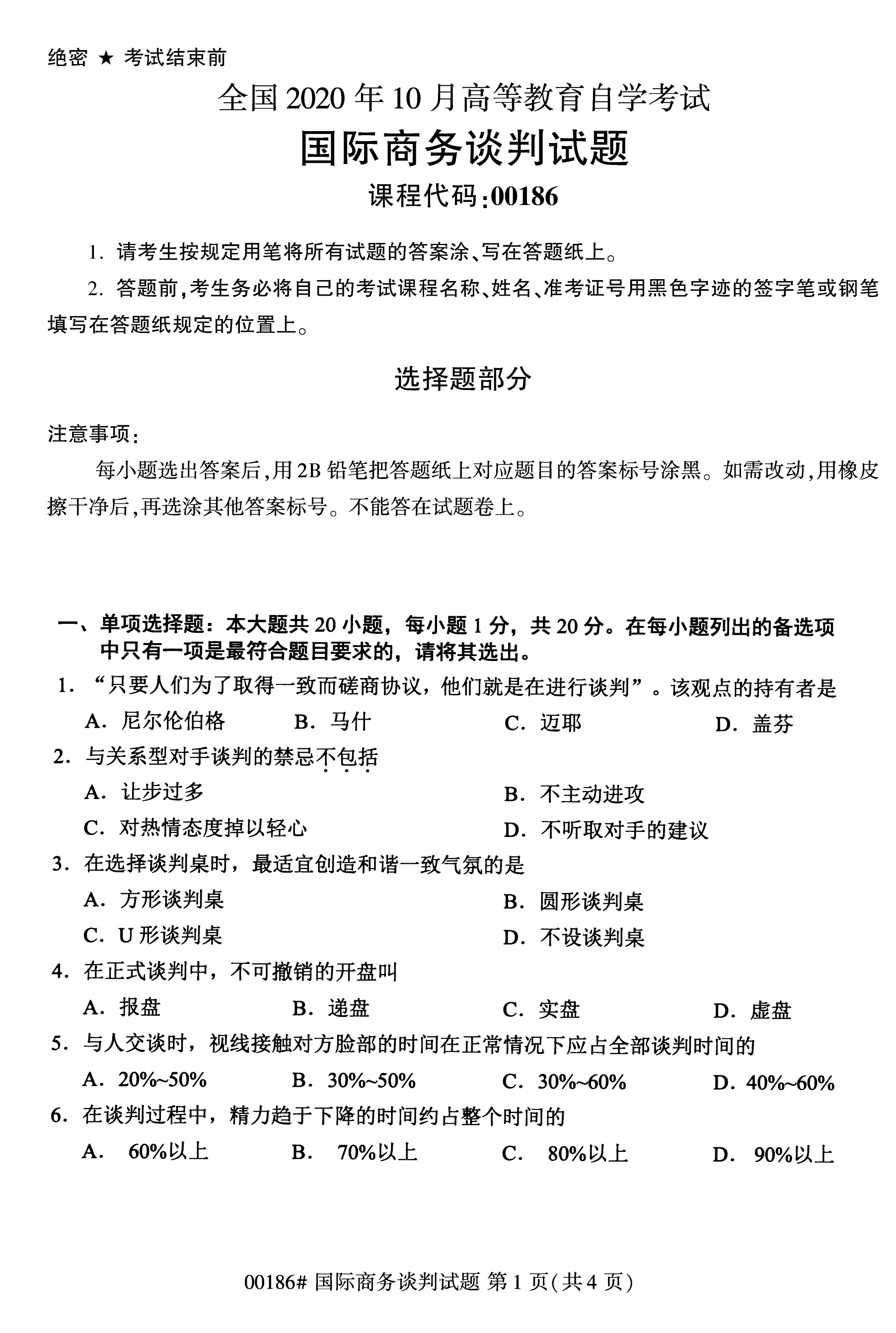 上一篇:2020年10月全国自考国际贸易理论与实务(00149)试卷