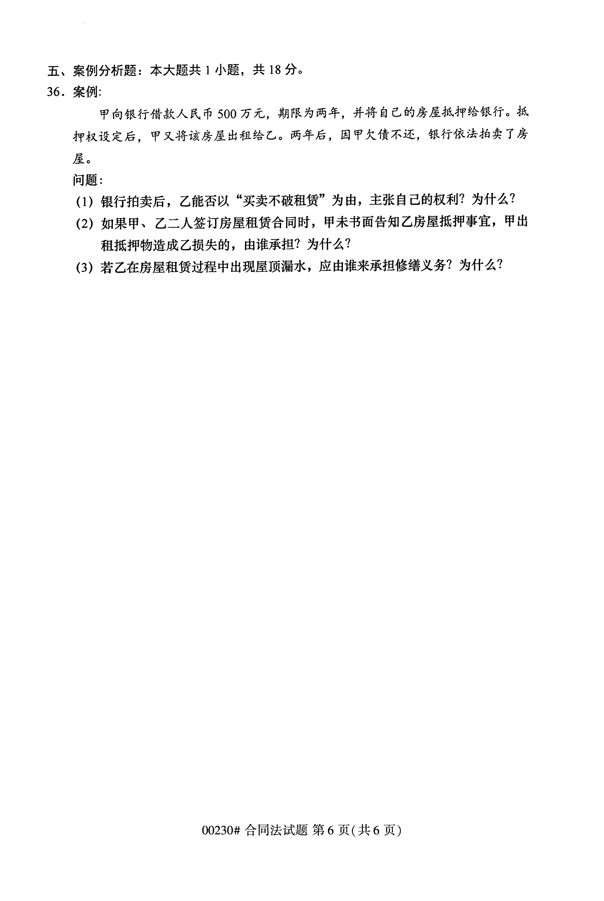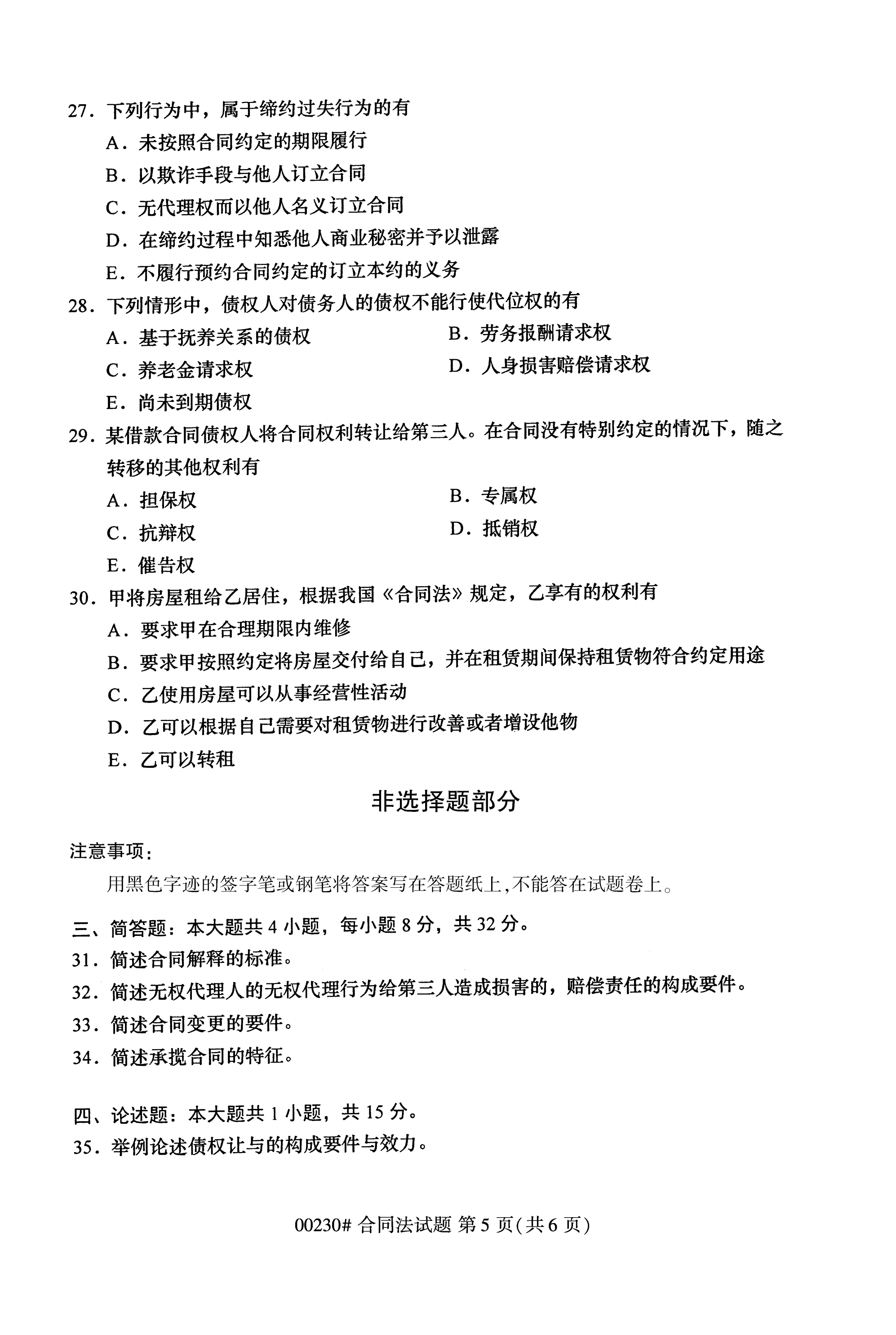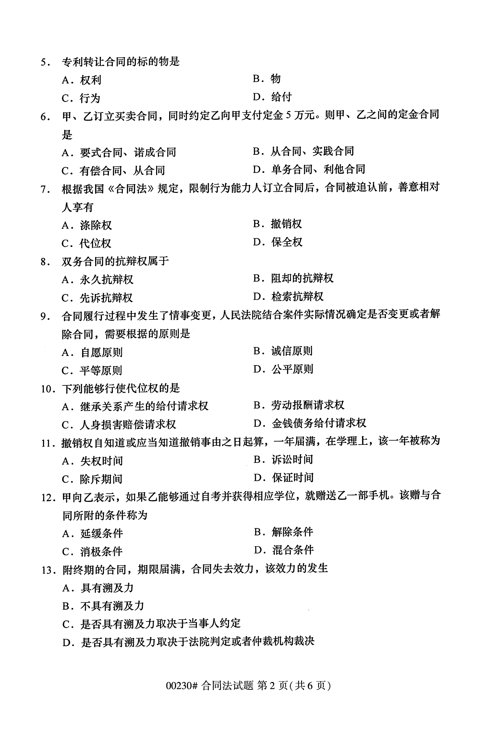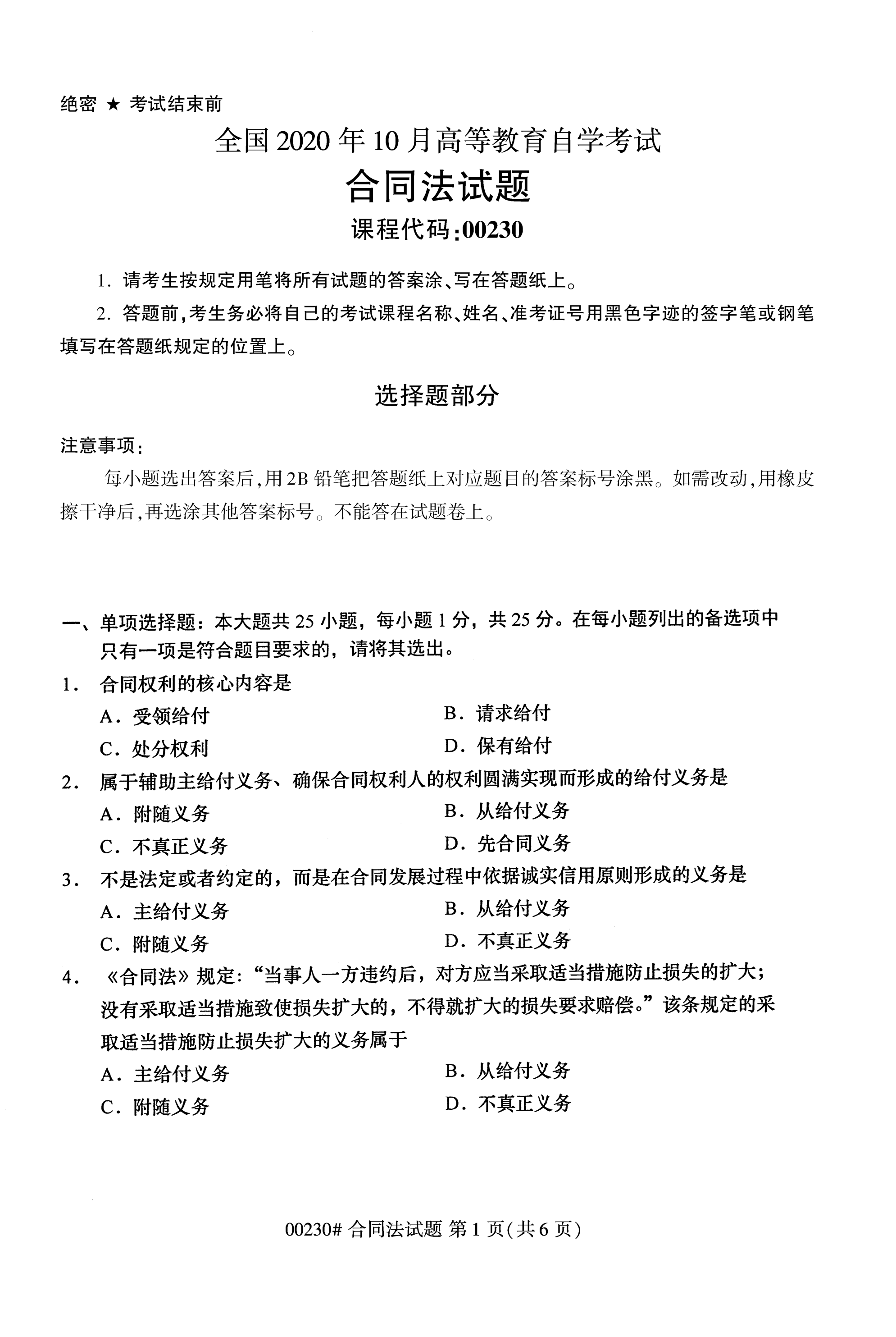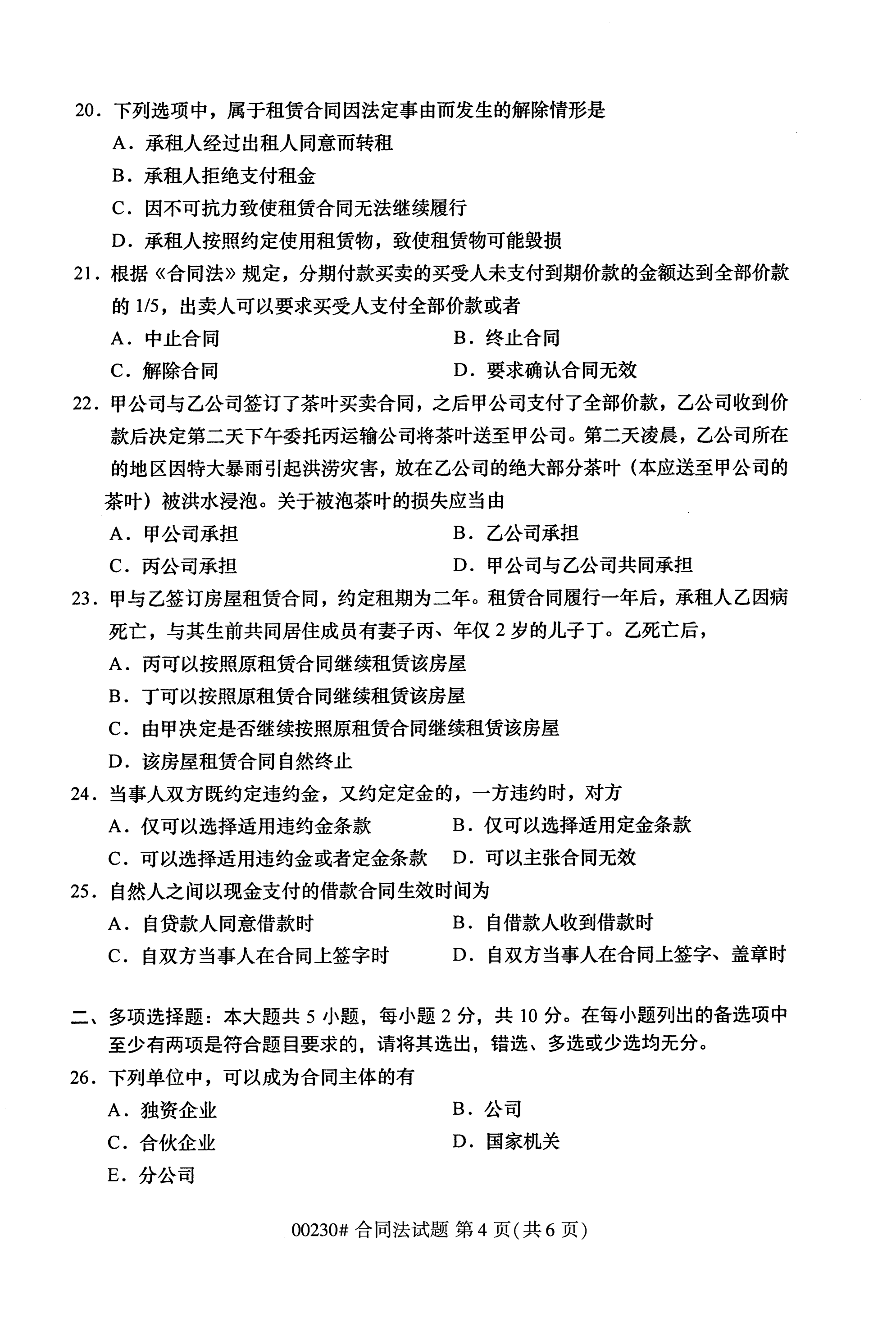 2020年10月全国自考合同法(00230)试卷