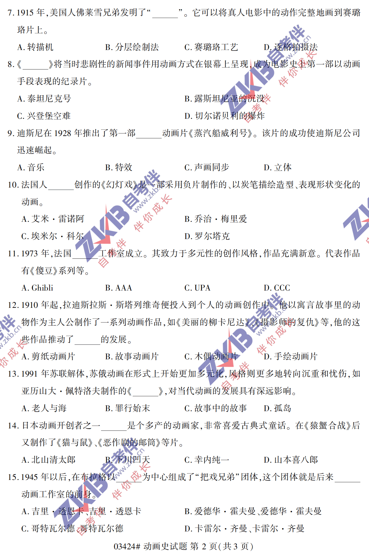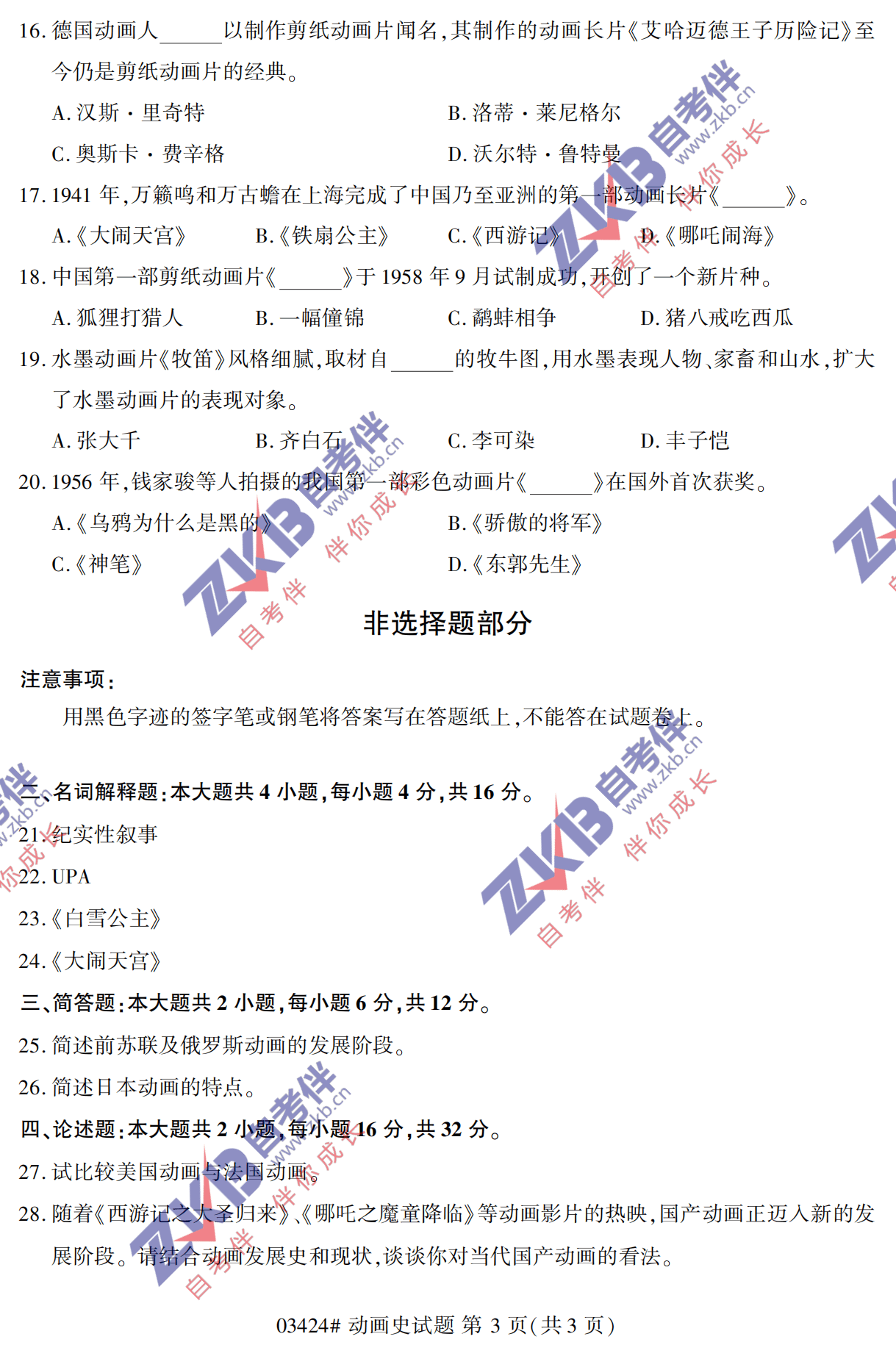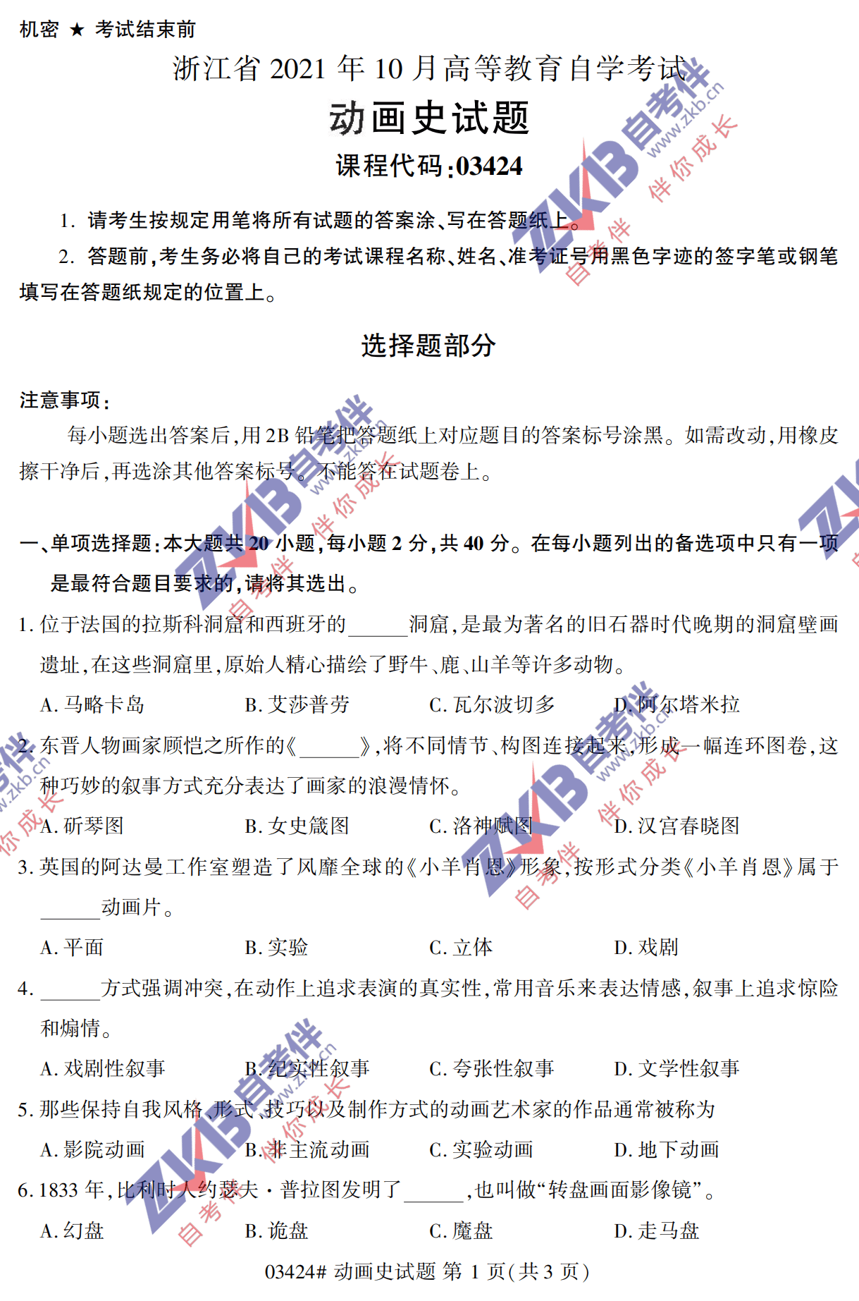 【导读】给大家整理了2021年10月天津自考03424动画史真题试卷,希望能给你们带来一些帮助,快来天津自考网看看吧!