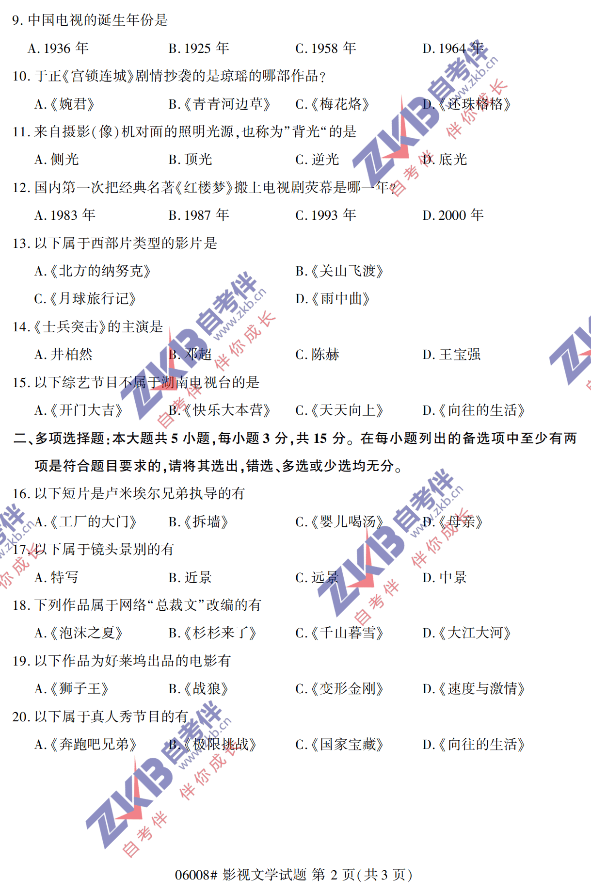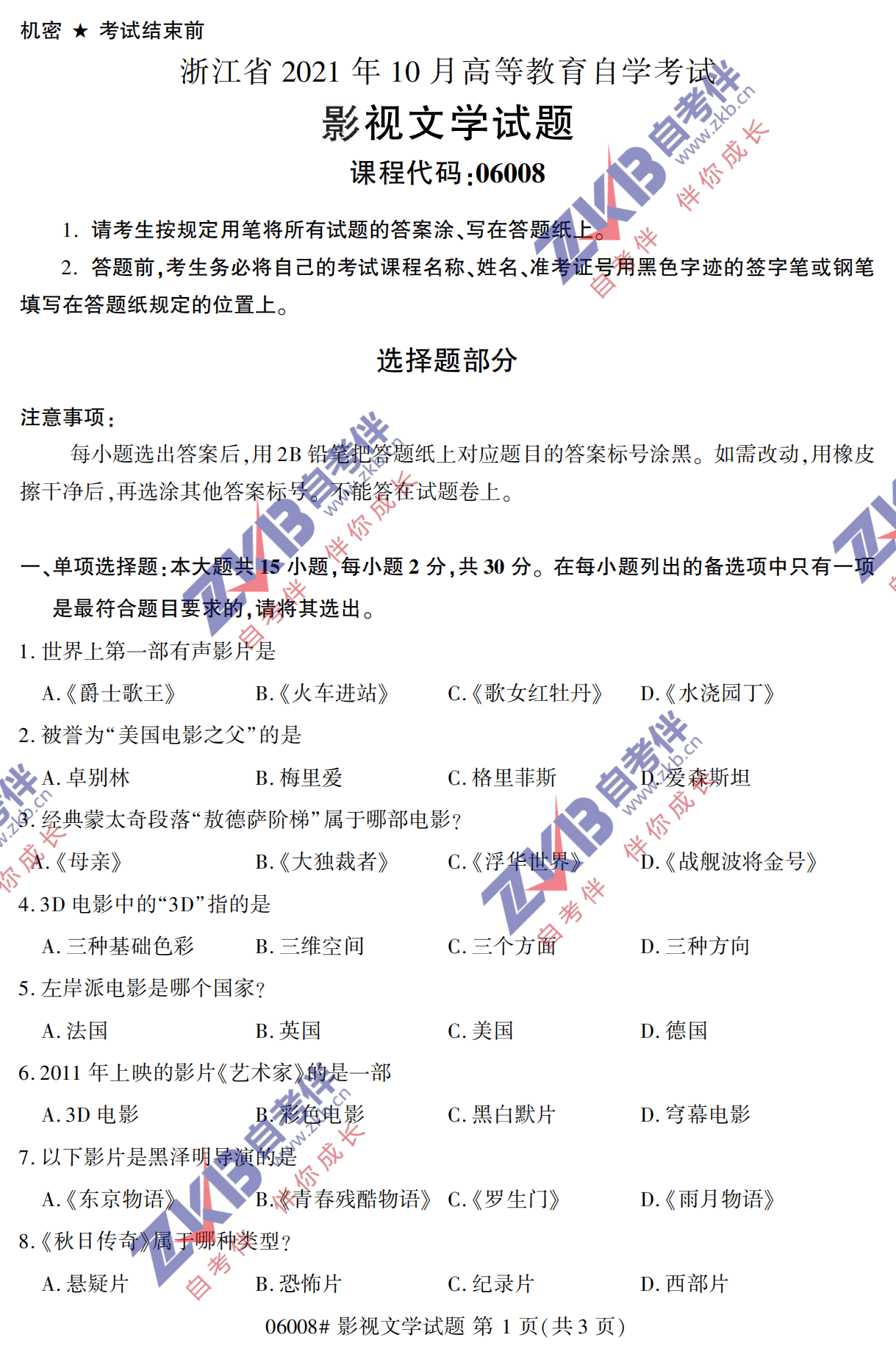 【导读】给大家整理了2021年10月天津自考06008影视文学真题试卷,希望能给你们带来一些帮助,快来天津自考网看看吧!