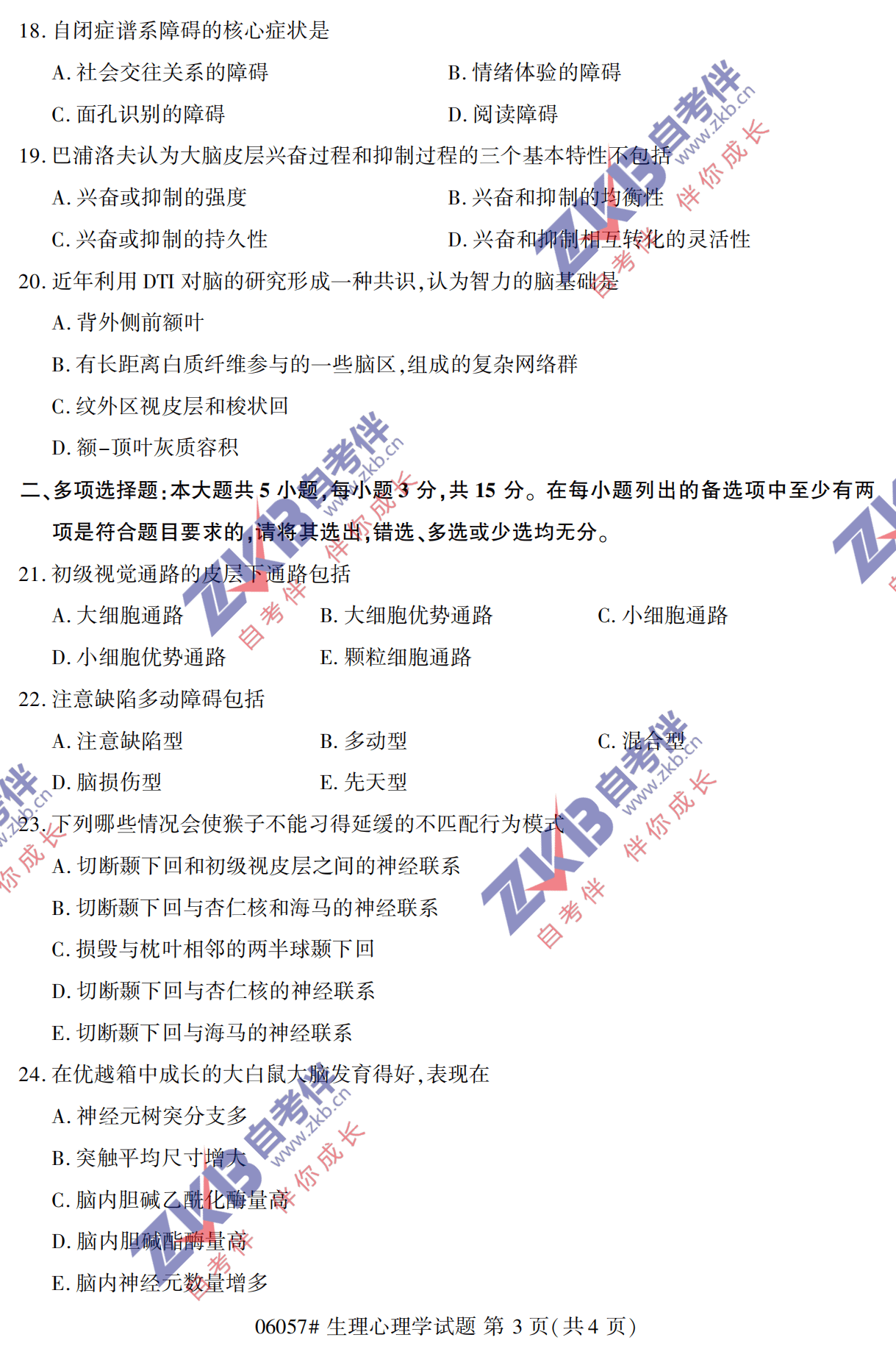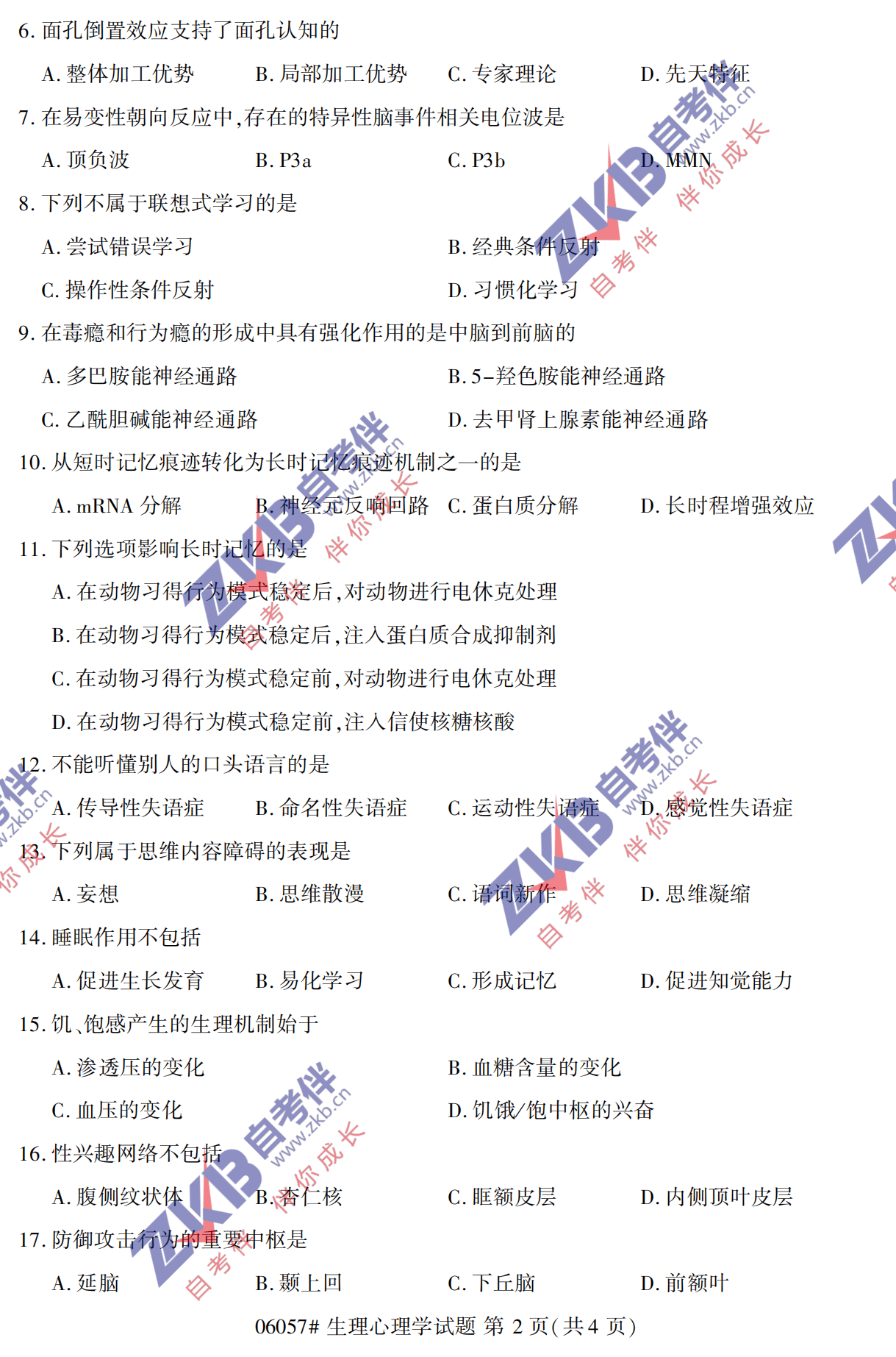 【导读】给大家整理了2021年10月天津自考06057生理心理学真题试卷,希望能给你们带来一些帮助,快来天津自考网看看吧!