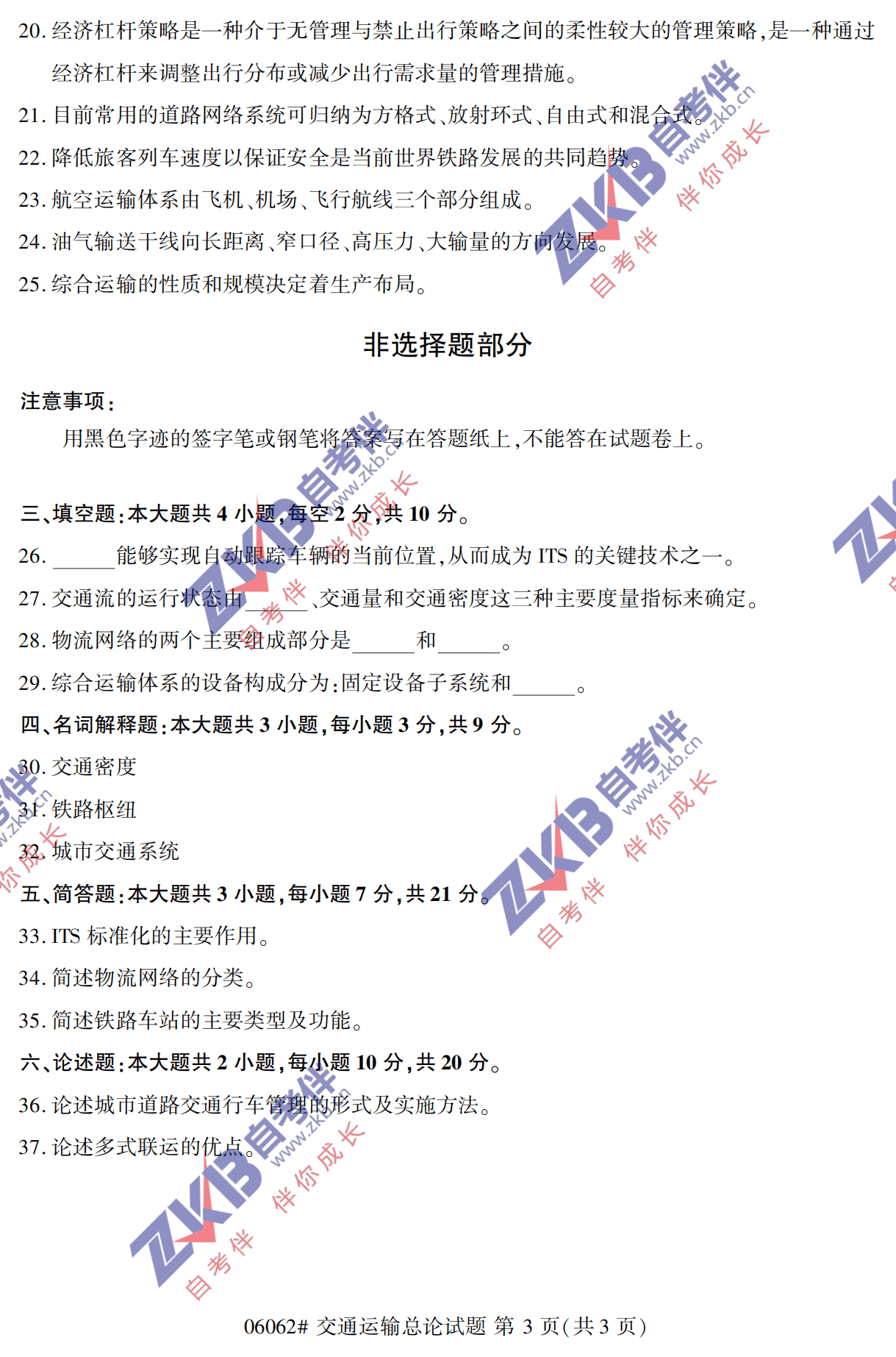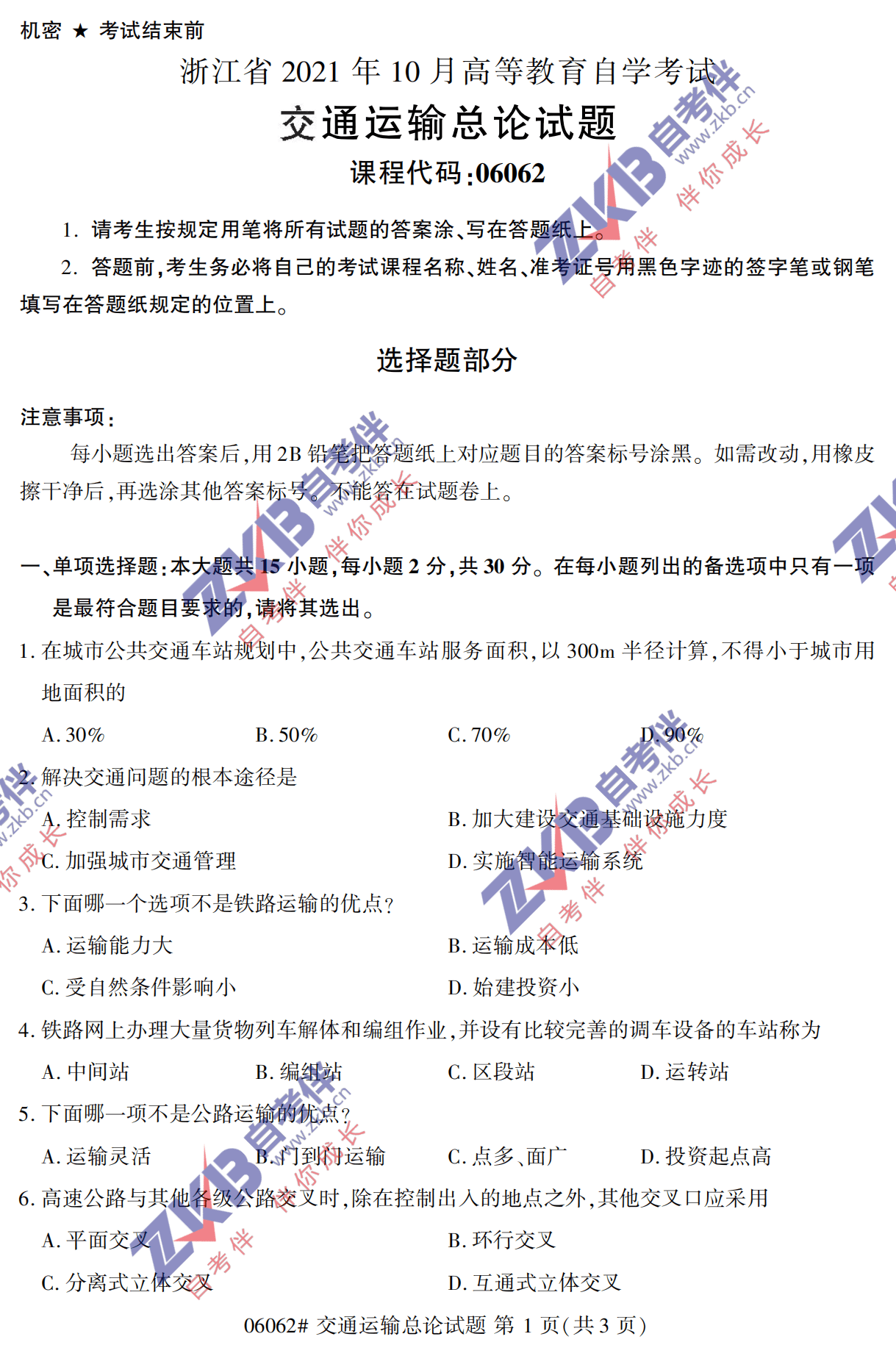 【导读】给大家整理了2021年10月天津自考06062交通运输总论真题试卷,希望能给你们带来一些帮助,快来天津自考网看看吧!