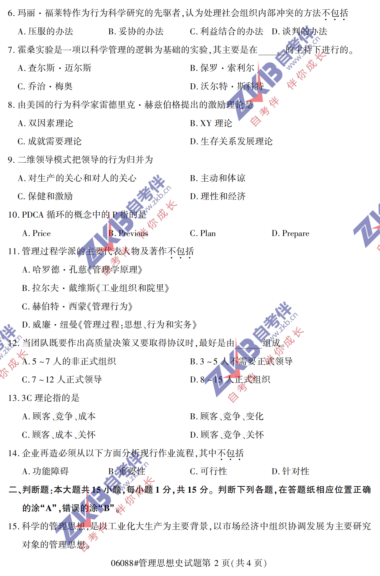 下一篇:2021年10月天津自考06090人员素质测评理论与方法真题试卷