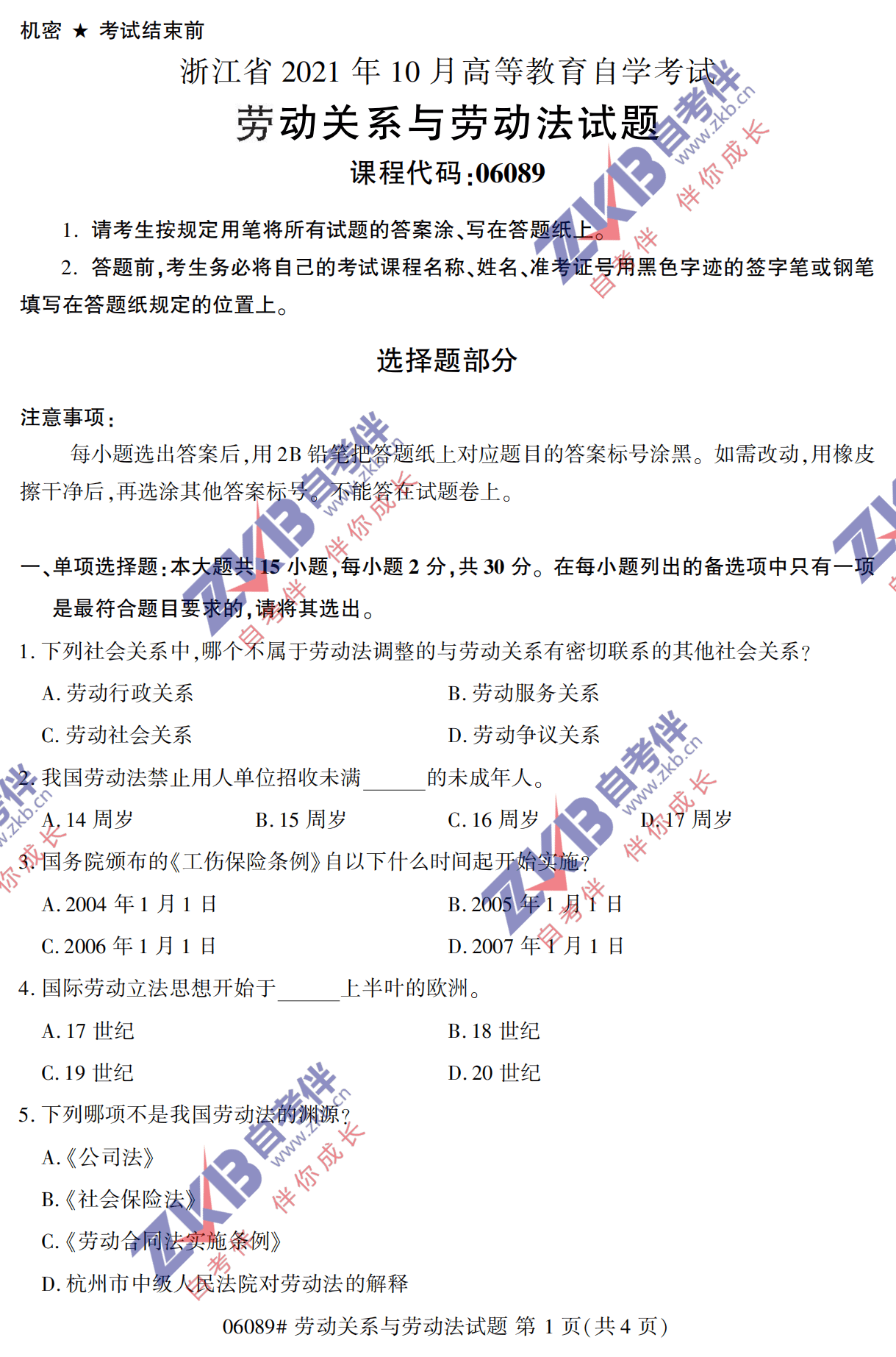 上一篇:2021年10月天津自考06089劳动关系与劳动法真题试卷